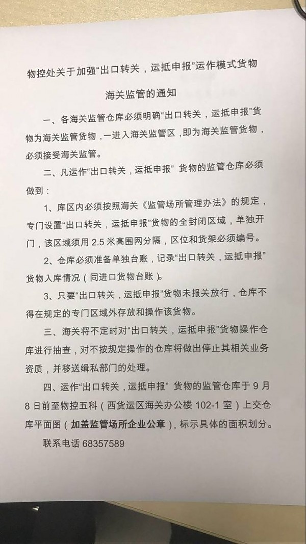 --유의점 : 상기 공문에 따르면, 화물에 대한 통관 수속 신청 후,반드시 3일 이내에 화물이 해관 관리 감독 하에 있는 구역으로 선적이 가능하다는 것입니다.3일의 시간이 지나면, 선적을 하지 못하는 경우가 발생할 수도 있으니 주의하시기 바랍니다.